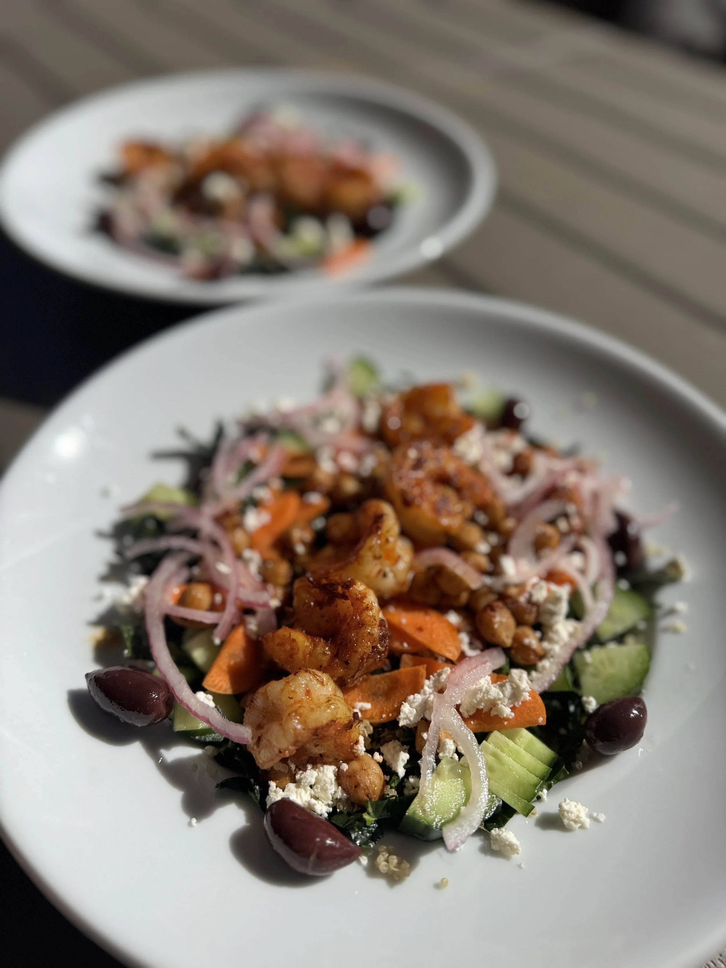 This Mediterranean-inspired kale salad is packed with protein, healthy fats, and vibrant flavors. Tender shrimp, hearty garbanzo beans, crisp cucumbers, briny olives, and creamy feta come together with a bright lemon-tahini dressing for a satisfying and nutrient-dense meal. Optional quinoa adds extra texture and fiber, making this salad perfect for a light yet filling lunch or dinner.