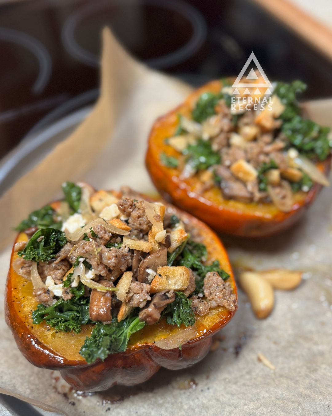 I’ve been making this dish (and varieties of it) for decades. Vegan versions, this version, sometimes with wild rice, all kinds of options are available. If you’re new to acorn squash - you will want to eat the filling - not the skin. It bakes up into a rather hard shell.