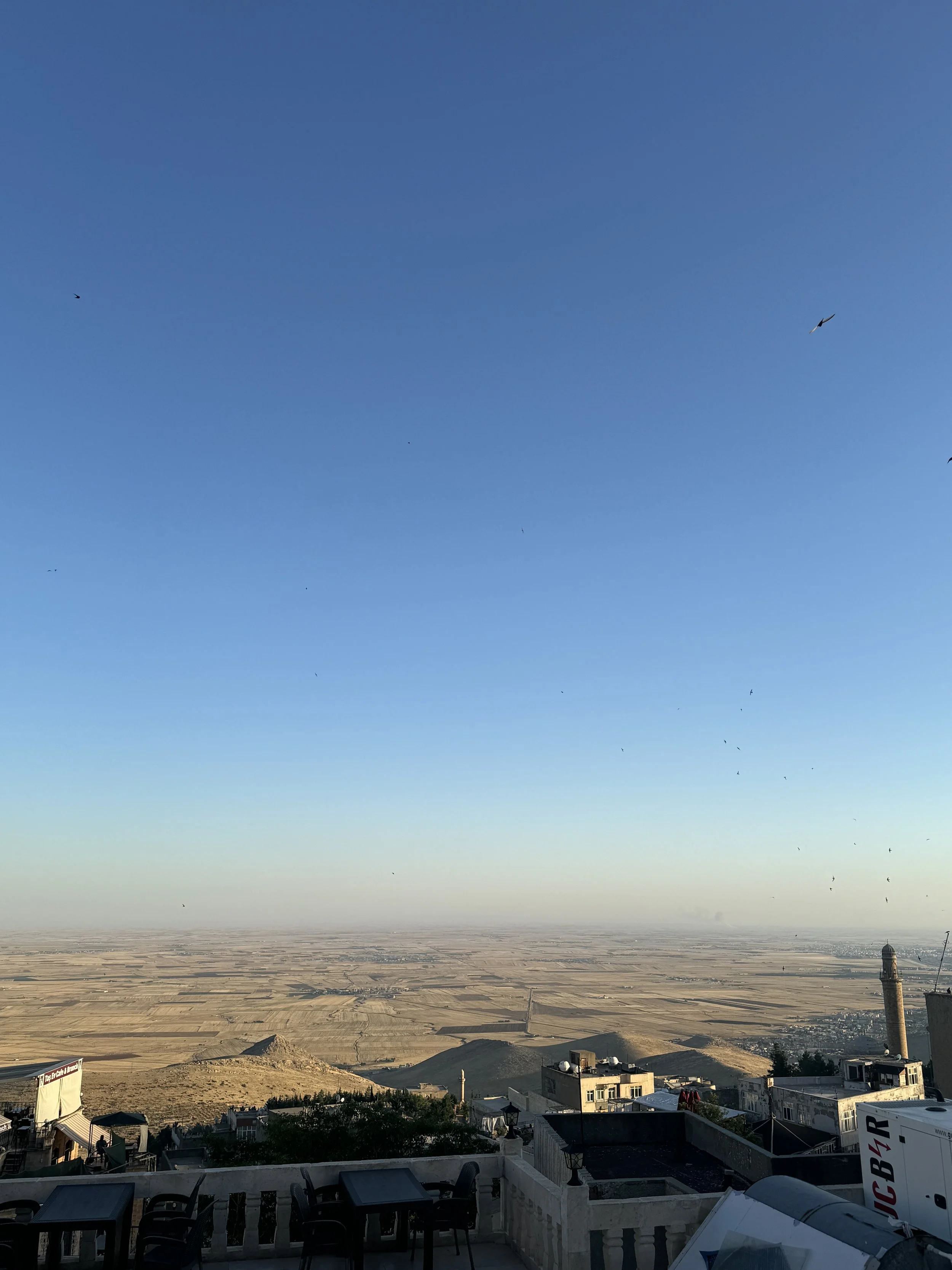 The son of the hotelier shyly asked if I wanted to see the view from the roof and took me out the deck then up a winding metal staircase on a platform they’d constructed. His thin arm stretched out before him gesturing to the endless view of the plains. “Mesopotamia,” he said with reverence in his voice. Mesopotamia? That’s still in use? My brain skipped back over the pages of my education certain that no one used this word anymore, but here I was and here he was and here was Mesopotamia. He left me with the view as little birds darted in the warm air. I couldn’t wait to get out and explore what this city held!